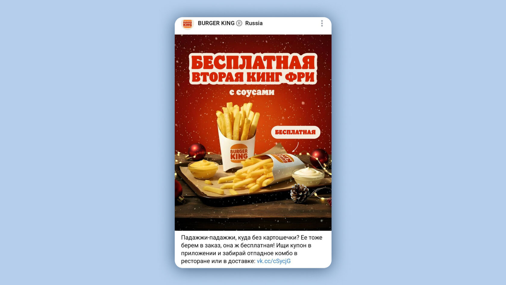 Голос бренда, единое оформление и четкий призыв к действию. Burger King показывает как «касаться» клиента в своем стиле