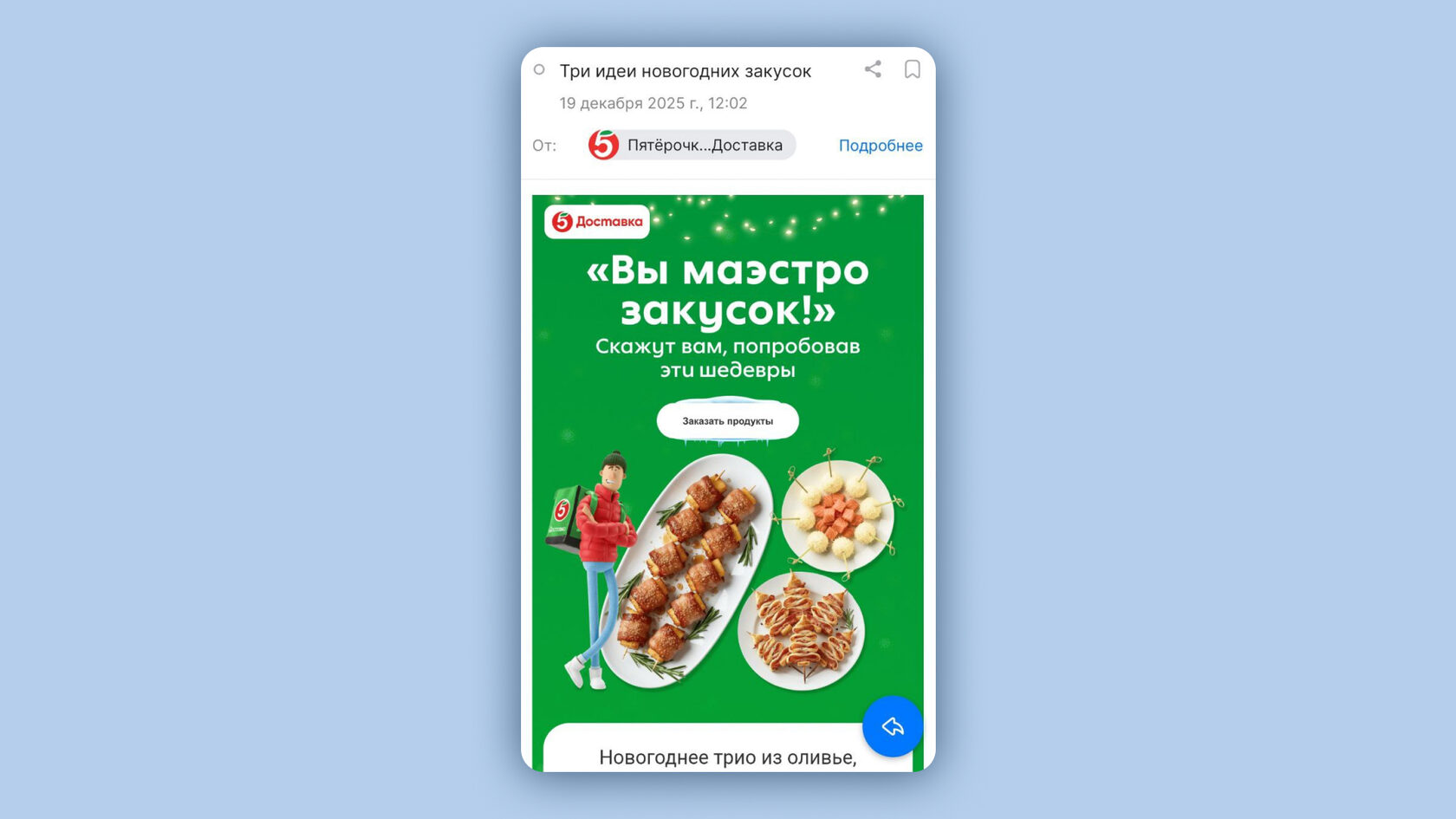 Актуальная рассылка от Пятерочки перед Новым годом, когда думаешь, что приготовить на стол