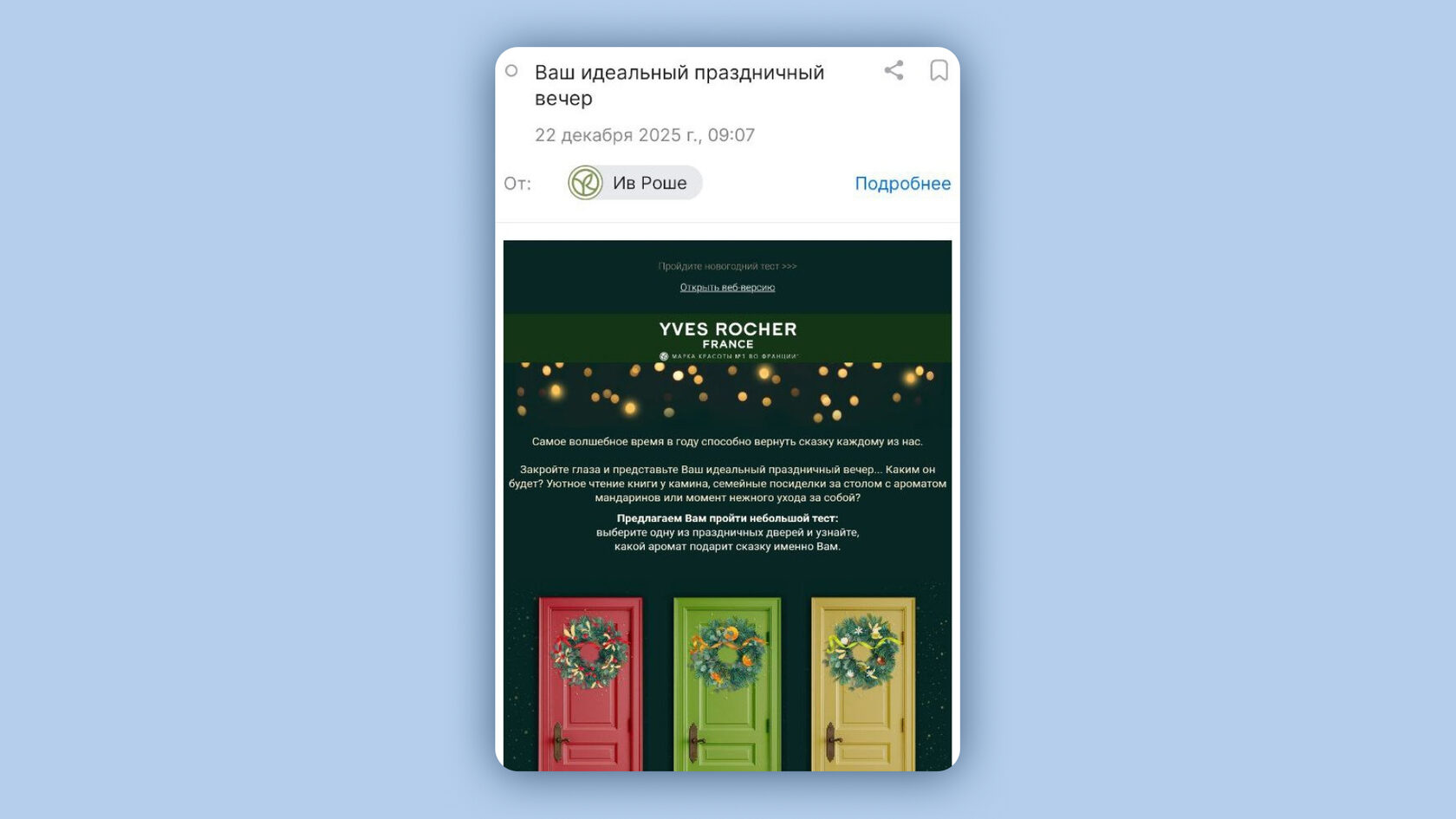 Тематическая email-рассылка от Ив Роше