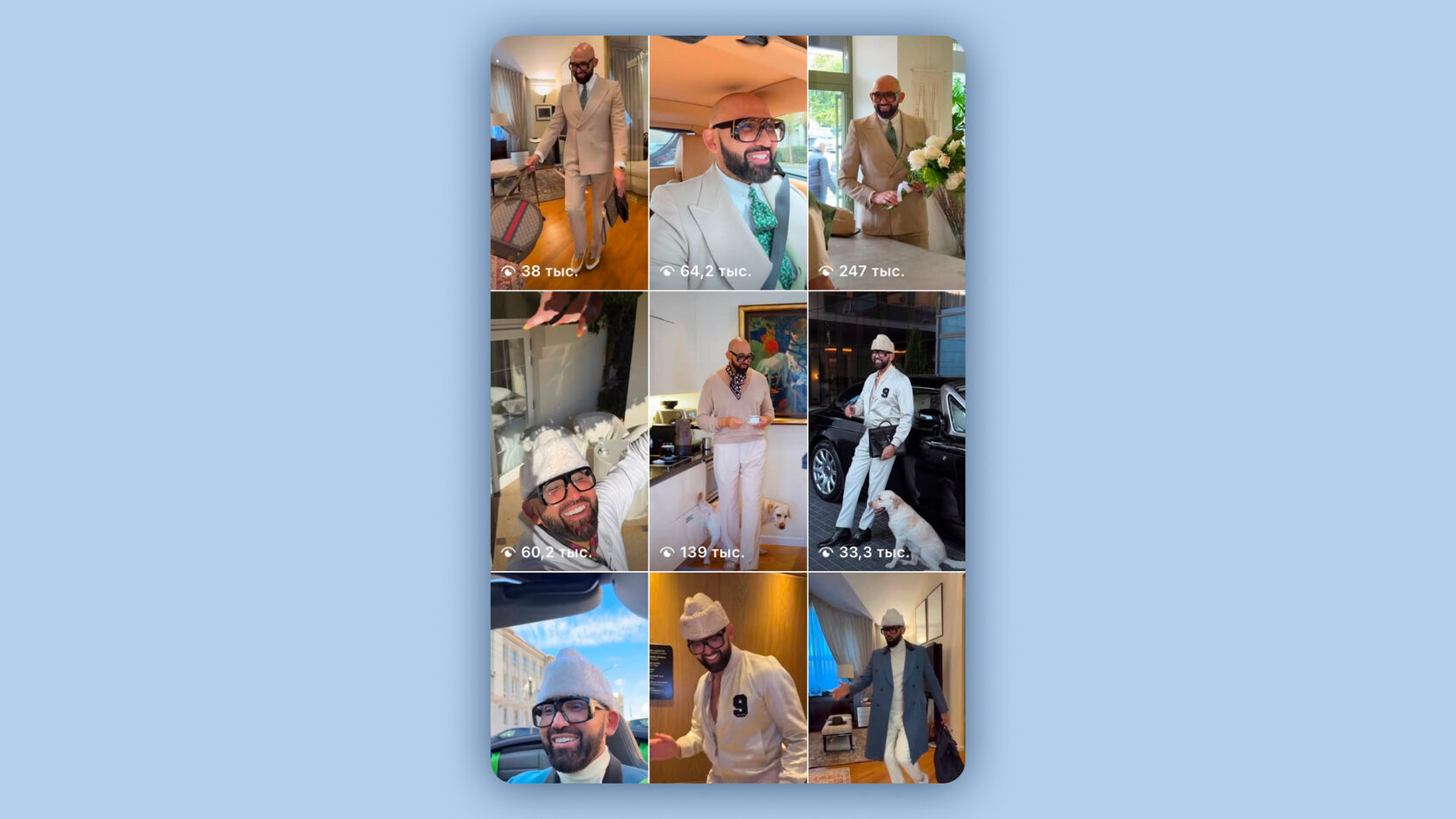 Ролики загадочного, вечно улыбающегося, одетого с иголочки мужчины в прошлом году попадались в рилсах, наверное, каждому. Николай Василенко выстроил свой личный бренд в соцсетях как человека-андидепрессанта. В основе его нарратива — образ безмятежного эстета, который искренне радуется солнцу, дождю, классической музыке, живым цветам и утреннему кофе.