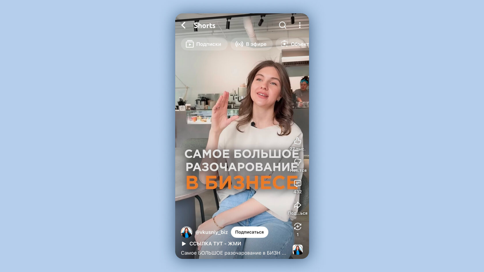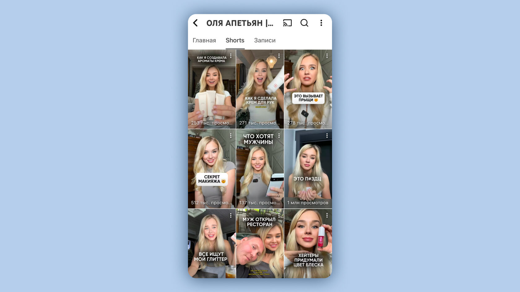 Пример: владелица бренда косметики Glow Me рассказывает в shorts, как она создавала самые продаваемые продукты, видео набирают сотни тысяч просмотров