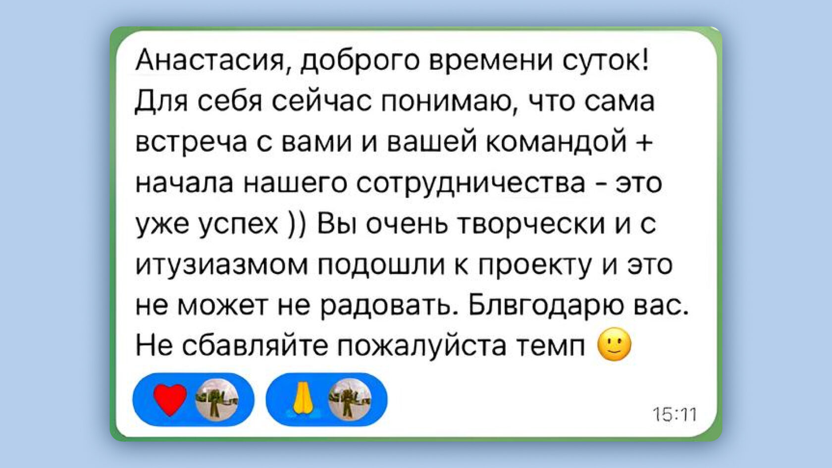 - Клиент неоднократно отмечал высокую скорость, слаженность работы и проактивный подход команды.