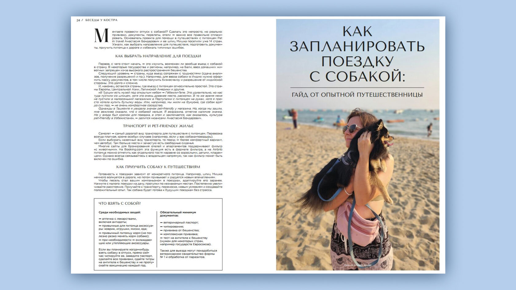 Авторы глубоко изучили тему внутреннего туризма. Они писали тексты и брали интервью у героев журнала. Например, у путешественника, который преодолел на каяке маршрут из Анапы в Крым, или у психолога, который рассказал, как справиться со стрессом перед поездкой. Также команда готовила практические гиды по локациям и полезные советы для тех, кто путешествует с детьми и не только.