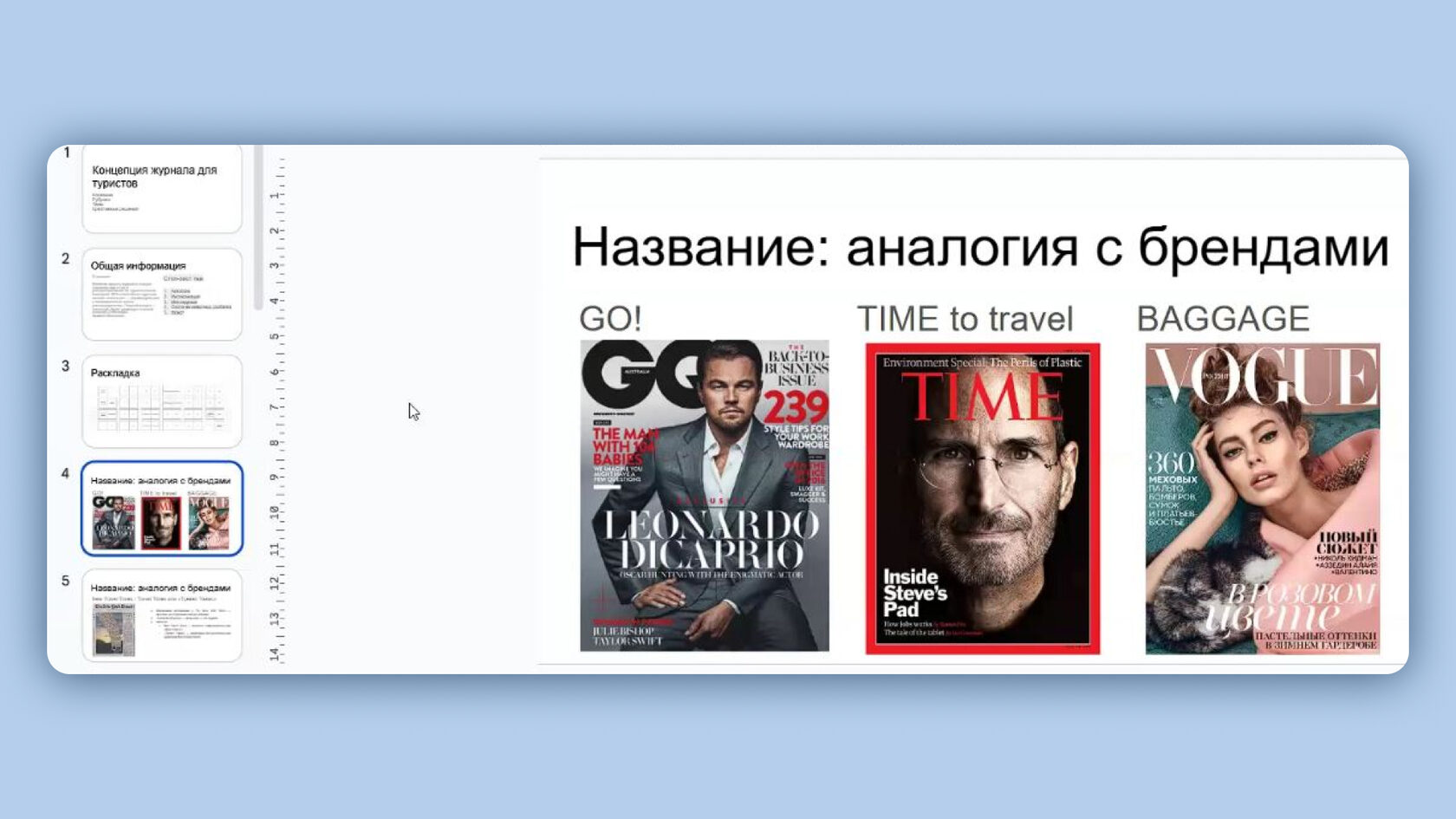 На первой неделе мы провели мозговой штурм с Александром. Нам нужно было придумать название журнала и определиться с рубриками. Каждый из нас заранее подготовил свои идеи. В итоге обсуждение получилось живым и продуктивным.