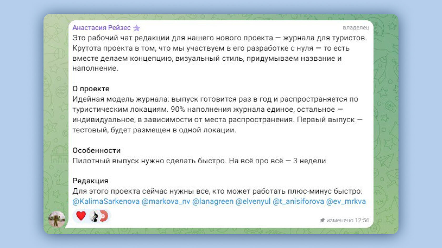Мы записали все рабочие процессы и идеи для следующих выпусков. Теперь новый номер можно собрать гораздо быстрее.