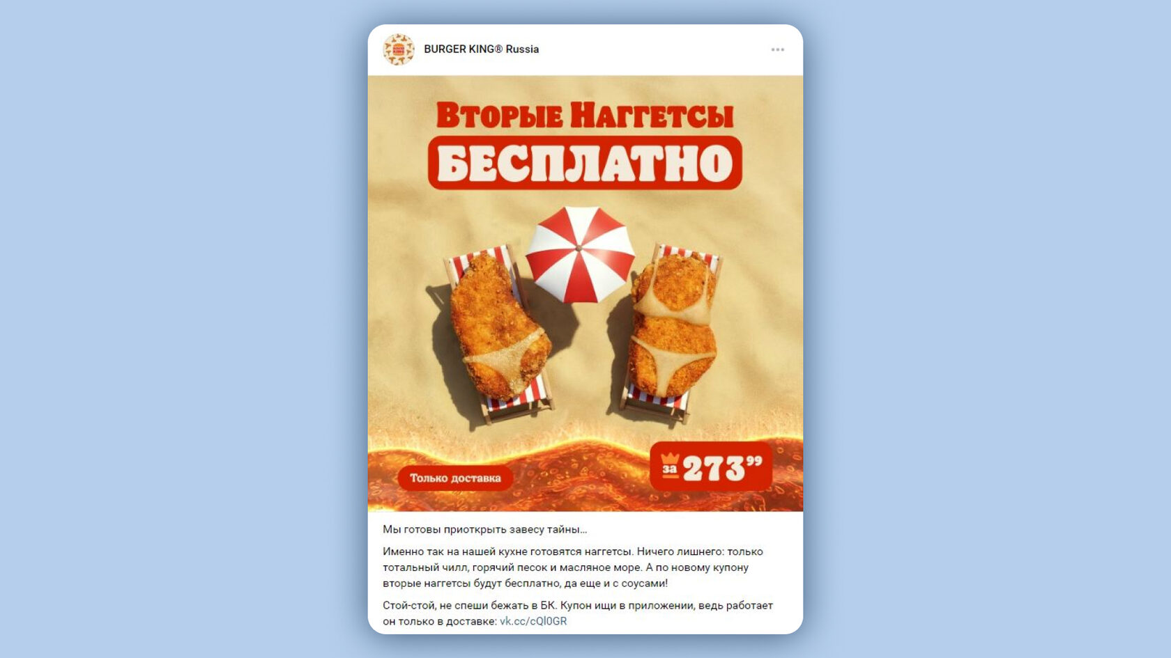 Пример продающей публикации BURGER KING
