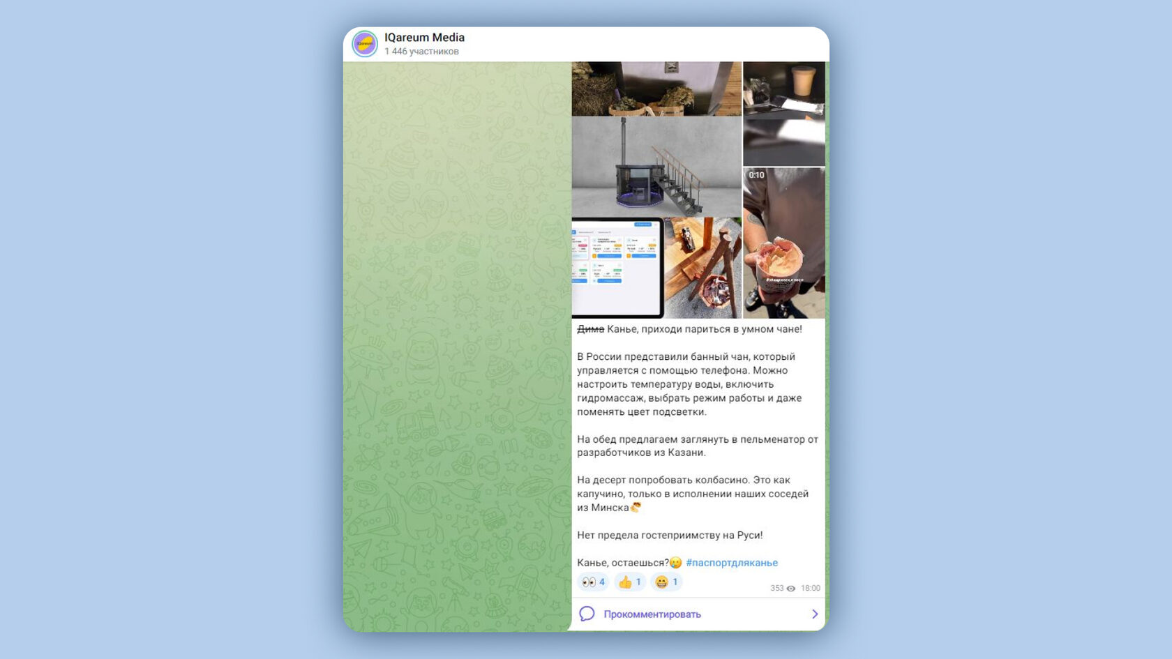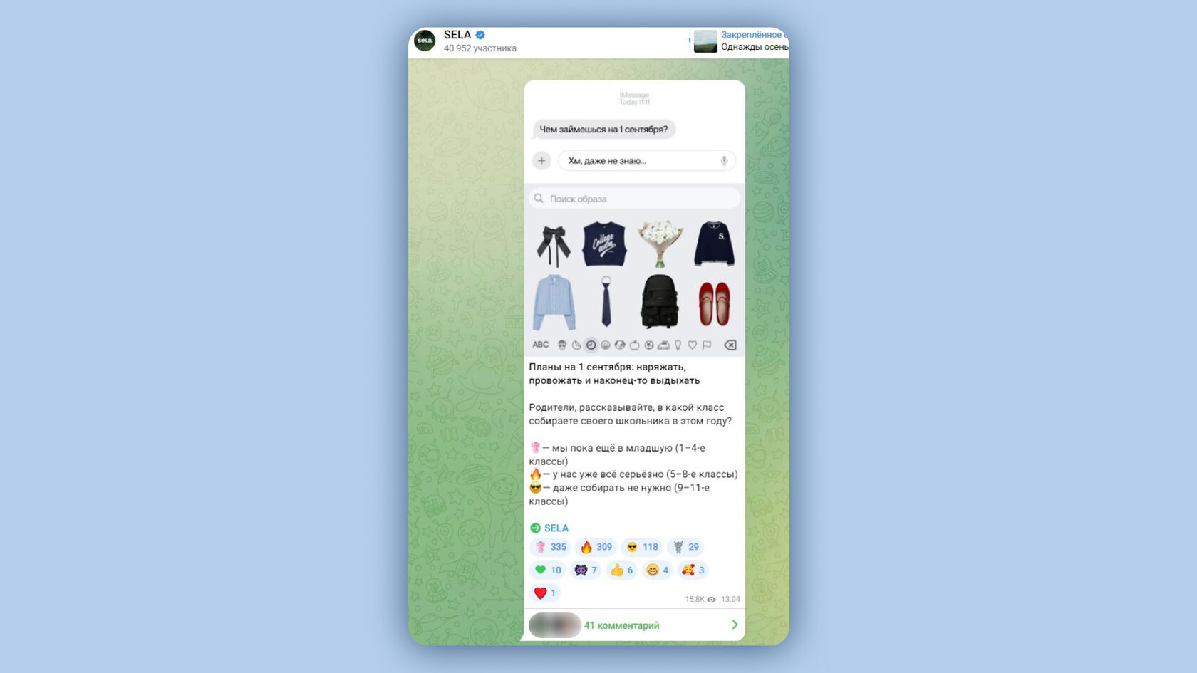 Пример вовлекающего поста в телеграм-канале SELA