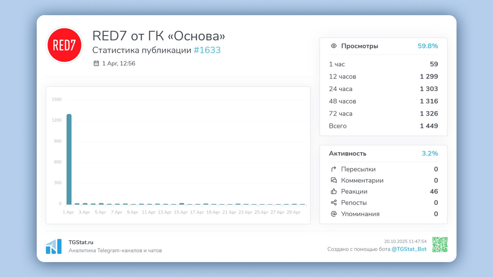 Чтобы посмотреть статистику публикации, можно использовать Telegram-бот