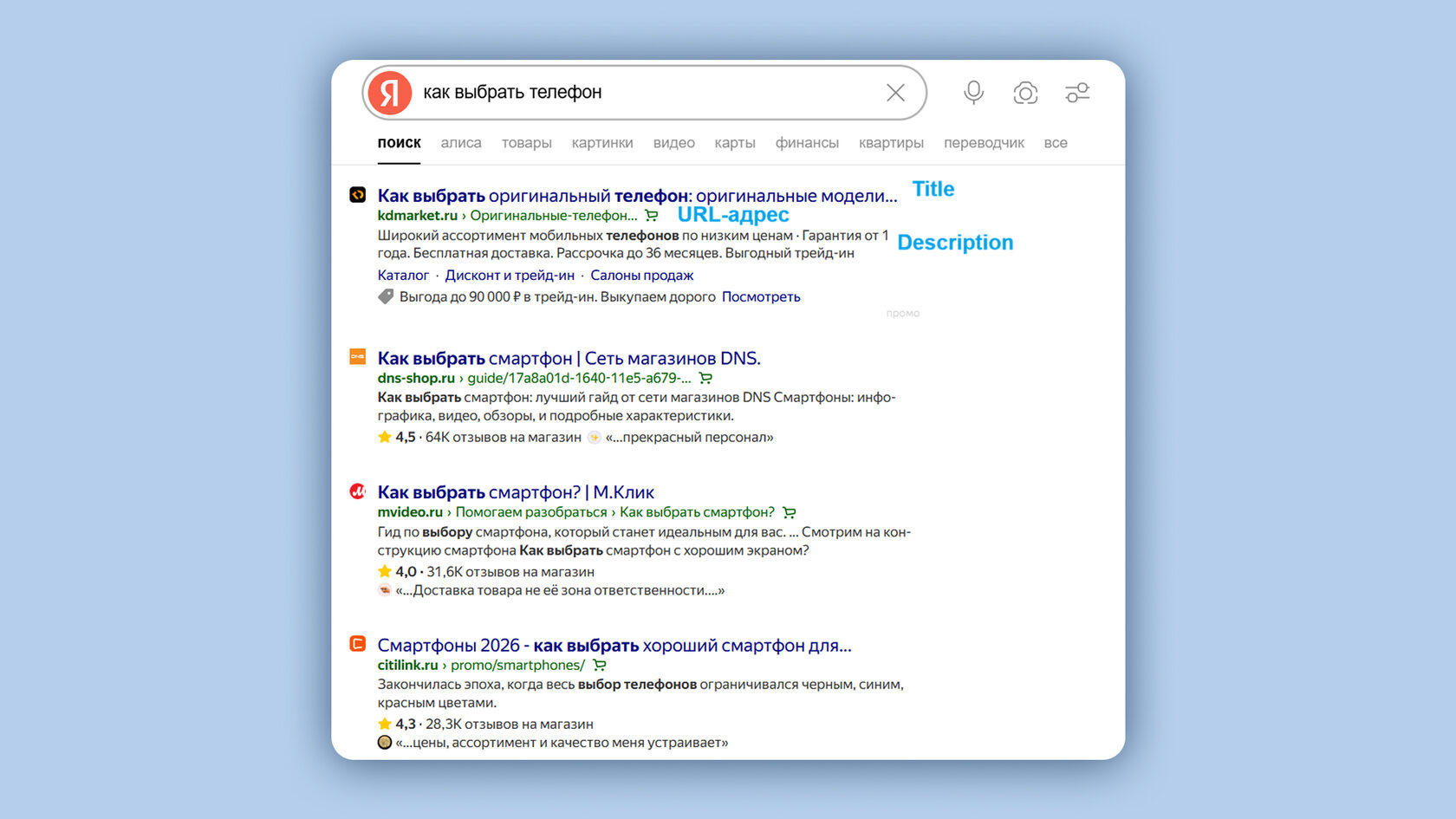 Пример SEO-метатегов в поисковой выдаче